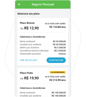 Você e sua família podem contar com um exclusivo Seguro de Vida com um preço que cabe no seu bolso e sem reajuste por aumento de idade. Garanta proteção em caso de morte em qualquer situação, invalidez por acidente e reembolso para despesas médicas e hospitalares por acidente.