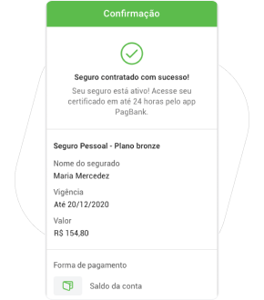 Seguro Vida em Grupo – Taxa Média Registro SUSEP nº 15414.900277/2017-04, garantido pela Previsul Seguradora, CNPJ: 92.751.213/0001-73 – Código SUSEP: 0519-3. Os sorteios desta promoção são emitidos pela CNP Capitalização S/A (CNPJ 01.599.296/0001-71, Registro SUSEP n° 15414.900032/2019-31. O cliente titular participará em um sorteio no último sábado do mês subsequente ao da aquisição do PagBank Seguro de Vida no valor de R$ 20.000,001 líquido de Imposto de Renda. É proibida a venda de título de capitalização a menores de 16 anos (Código Civil). O segurado poderá consultar todas as informações referentes aos produtos através do site www.susep.gov.br/menu/consulta-de-produtos-1 ou ainda fazer download através do site www.previsul.com.br. O registro destes planos pela SUSEP não implica incentivo ou recomendação à sua comercialização, representando exclusivamente sua adequação às normas em vigor.
